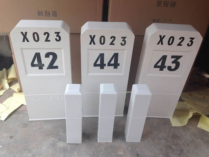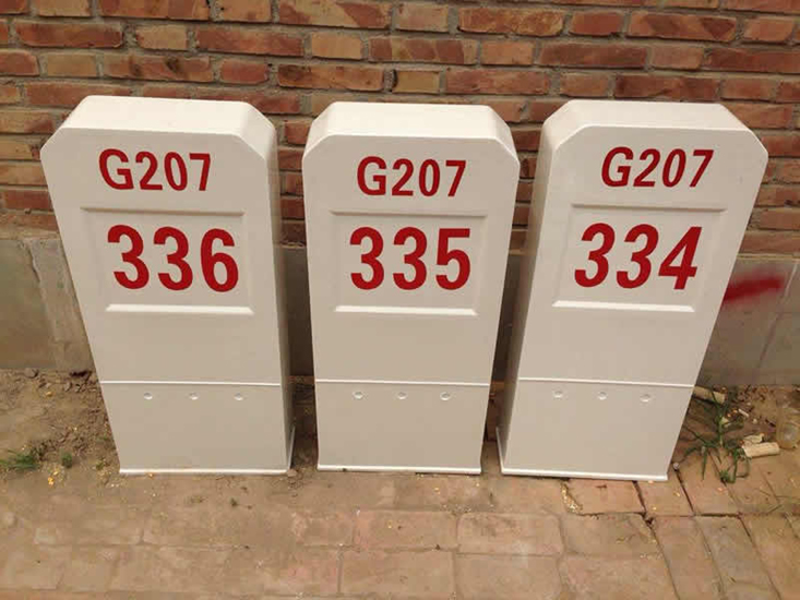 一、玻璃鋼里程碑玻璃鋼百米樁,每1000米設一個,玻璃鋼里程碑的顏色,國道為白底紅字;省道為白底藍字;縣道為白底黑字。設置在道路順路線方向的右側。比重輕、抗腐蝕、耐老化、密封性能好,安全美觀,具有全天候防護功能,能夠滿足室外工程項目中各種惡劣環境和場所的需要,具備優異的絕緣材料,高性能的絕緣電阻防止漏電,在高頻下能保持良好的介電性能,不反射,不阻斷微波的傳播,不生銹 長期使用安全。